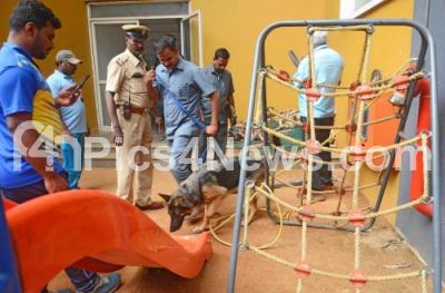 Bomb squads with sniffer dog search the premises of a school after some private school received an email with a bomb threat on its premises, in Bengaluru on Friday 1st December 2023