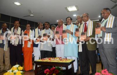 Former Minister HM Revanna with VR Sudarshan, H Anjaneya and others releasing the book “Gavimarga” and presented VP Singh Award to people from different fields at University of Agricultural Sciences, Queens Road, in Bengaluru on Friday 1st December 2023