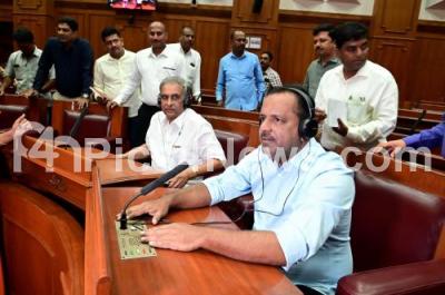 Photo Caption : Assembly Speaker UT Khader with Legislative Council chairman, Basavaraj Horatti inspecting the preparations for the winter session at Suvarna Soudha, in Belagavi on Sunday 3rd December 2023