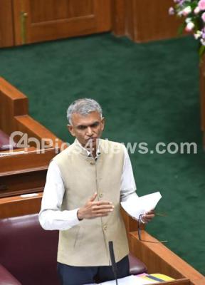 Photo Caption : Minister Krishna Byre gowda addressing during the winter Assembly session at Suvarna Soudha, in Belagavi on Monday 4th December 2023