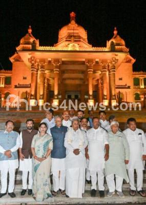 Photo Caption : Chief Minister Siddaramaiah inaugurating the permanent lighting for Suvarna Soudha, also seen are Legislative Assembly Speaker UT Khader, Legislative Council Chairman Basavaraja Horatti, Minister of Public Works Department and Belagavi District In-charge Minister Satish Jarakiholi, Women and Child Development Department Minister Lakshmi Hebbalakar, Home Minister G. Parameshwar, Tourism Department Minister H.K. Patil, Transport Minister Ramalinga Reddy and others, in Belagavi on Monday 4th December 2023