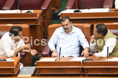 Photo Caption : BJP MLAs Basangouda Patil Yatnal, Sunil Kumar and R Ashoka during Assembly session at Suvarna Soudha, in Belagavi on Friday 8th December 2023