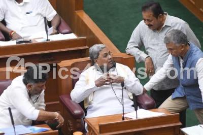 Photo Caption : Chief Minister of Karnataka Siddaramaiah with DCM DK Shivakumar and Ministers during Assembly session at Suvarna Soudha, in Belagavi on Friday 8th December 2023