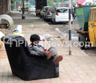 Photo Caption : Sofa So Good, a bbmp worker relaxing on sofa on a footpath at Wilson Garden, in Bengaluru on Saturday 9th December 2023