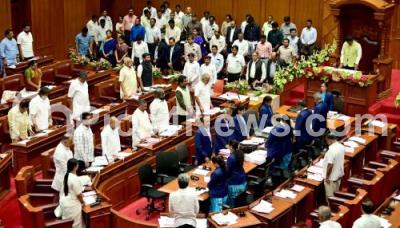 Photo Caption : Ministers and MLCs condolence to veteran actress Leelavati, who passed away recently, during Council session at Suvarna Soudha, in Belagavi on Monday 11th December 2023