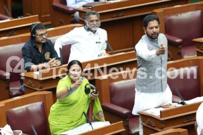 Photo Caption : Congress MLAs Roopa Sashihar and Sharat Bache Gowda arguments during Assembly Session at Suvarna Soudha, in Belagavi on Wednesday 13th December 2023