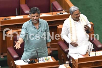 Photo Caption : Chief Minister of Karnataka Siddaramaiah and DCM DK Shivakumar during the Assembly session at Suvarna Soudha, in Belagavi on Friday 15th December 2023