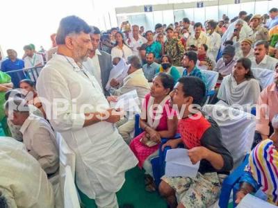 DCM DK Shivakumar receiving public petition during the inauguration of Government at Your Doorstep at Yelachenahalli, also seen are MLA Krishnappa and others, in Bengaluru on Thursday 11th January 2024