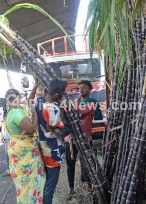 Photo Caption : Sugarcane for the Sankranthi festival at KR Market, in Bengaluru on Saturday 13th January 2024