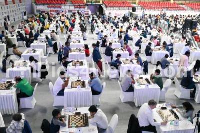 Photo Caption : Participants during the inauguration of "First Bangalore International Grandmaster Open Chess" organised by Bengaluru Urban District Chess Association at Kanteerava Indoor Stadium, in Bengaluru on Thursday 18th January 2024