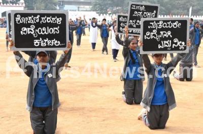 Photo Caption : Students cultural dance during the full dress rehearsal for the Republic Day celebrations at Manekshaw Parade Grounds, in Bengaluru on Wednesday 24th January 2024