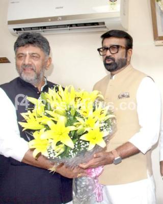 DCM DK Shivakumar greeted MLA NA Harris during his charge taking ceremony as the BDA Chairman, in Bengaluru on Monday 29th January 2024