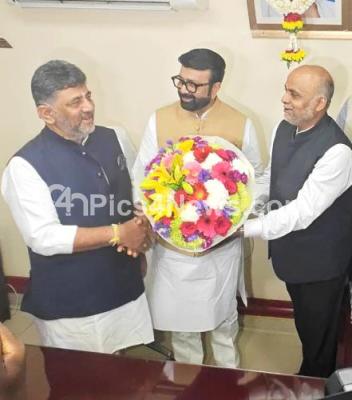 Event Description : DCM DK Shivakumar greeted MLA NA Harris during his charge taking ceremony as the BDA Chairman, in Bengaluru on Monday 29th January 2024