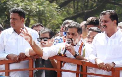 Photo Caption : Puttanna submitted his nomination papers as a Congress MLC candidate for the by-elections from the Bengaluru Teachers Constituency, also seen are Ministers Zameer Ahmed Khan, MC Sudhakar and others, in Bengaluru on Monday 29th January 2024