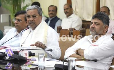 Chief Minister of Karnataka Siddaramaiah addressing press conference with DCM DK Shivakumar at Vidhana Soudha, in Bangalore on Monday 5th February 2024