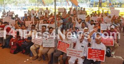 A joint action committee of Various Departments associations protesting to fulfill their various demands at Freedom Park, in Bengaluru on Wednesday 7th February 2024