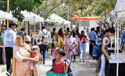 Photo Caption : Visitors during the inauguration of "Pustaka Sante" organised by Veera Loka at HSR Layout , in Bengaluru on Saturday 10th February 2024