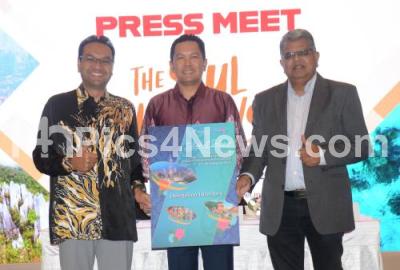 Razaidi Abd Rahim, Director of Tourism Malaysia (South India and SriLanka) with Mohammad Isa Abdul Halim, Director – Meeting and Support Incentives-Myceb and Ganneesh Ramaa, Vice President (Inbound and Domestic)- MATTA addressing a press conference on Malaysia Tourism at private hotel, in Bengaluru on Monday 12th February 2024