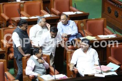 Photo Caption : DCM DK Shivakumar with Ministers and MLAs during the Assembly session at Vidhana Soudha, in Bengaluru on Tuesday 13th February 2024