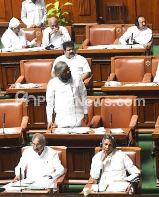 Photo Caption : Minister Eshwar Khandre addressing during Assembly session at Vidhana Soudha, in Bengaluru on Thursday 15th February 2024