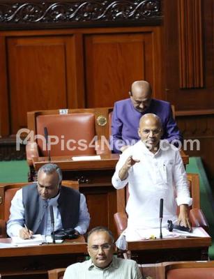 Photo Caption : Minister Sharan Prakash Patil addressing during Assembly session at Vidhana Soudha, in Bengaluru on Thursday 15th February 2024