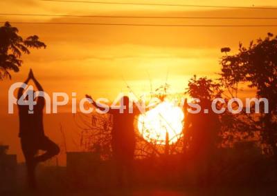 Event Description : People performing yoga asanas during the morning sunrise as part of Ratha Sapthami, in Bengaluru on Friday 16th February 2024