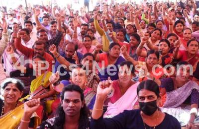 Photo Caption : Members of Karnataka state AIDS Prevention society staging indefinite strike for fulfillment of various demands at Freedom Park, in Bengaluru on Monday 19th February 2024
