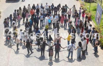 St Josephs college Students make a human chain to create awareness on save H2O at st josephs college, in Bengaluru on Tuesday 20th February 2024