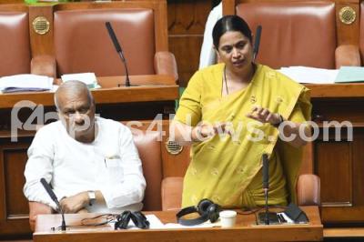 Photo Caption : Ministe Lakshmi Hebbalkar addressing during the Assembly session at Vidhana Soudha, in Bengaluru on Thursday 22nd February 2024
