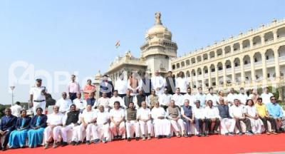 Photo Caption : Chief Minister Siddaramaiah with Council Chairman Basavaraj Horatti and all party MLCs group photo in front of Vidhana Soudha, during Council session, in Bengaluru on Thursday 22nd February 2024