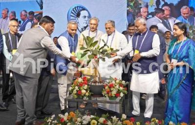Chief Minister of Karnataka Siddaramaiah with Council Chairman Basavaraj Horatti, Ministers Priyank Kharge, Dr. HC Mahadevappa, MLA ST Somashekar and others during the inauguration of "Constitution and Unity Convention" at Palace Grounds, in Bengaluru on Saturday 24th February 2024 Pics
