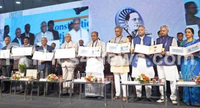 Photo Caption : Chief Minister of Karnataka Siddaramaiah with Council Chairman Basavaraj Horatti, Ministers Priyank Kharge, Dr. HC Mahadevappa, MLA ST Somashekar and others during the inauguration of "Constitution and Unity Convention" at Palace Grounds, in Bengaluru on Saturday 24th February 2024 Pics