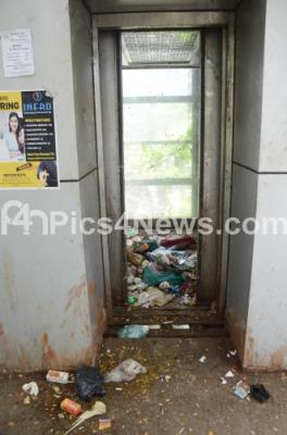 Photo Caption : Garbage stored inside the lift and on the staircase at the Skywalk at Lakkasandra, causing inconvenience to people, in Bengaluru on Tuesday 27th February 2024