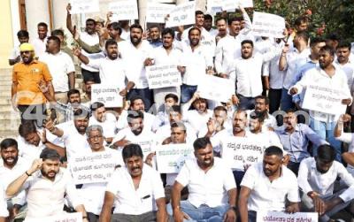Event Description : BJP leaders and workers protesting against State Congress government at Town Hall, in Bengaluru on Monday 4th March 2024