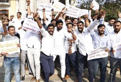 Event Description : BJP leaders and workers protesting against State Congress government at Town Hall, in Bengaluru on Monday 4th March 2024