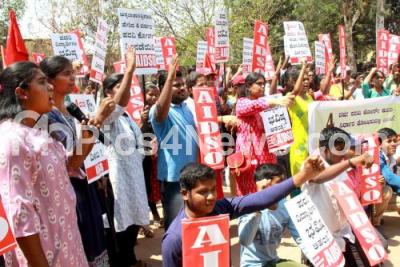 Event Description : Members of All India Democratic Student Organisation protest and demanding to immediately declare the decision on 4 year degree course, at Freedom Park, in Bengaluru on Thursday 7th March 2024
