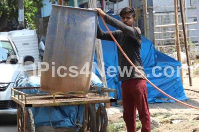 Photo Caption : A man filling water in a drum from private water tap due to the scarcity of drinking water in the City, in Bengaluru on Thursday 7th March 2024