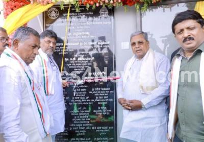 Photo Caption : CM Siddaramaiah with DCM DK Shivakumar, Ministers KH Muniyappa and Byrathi Suresh at the inauguration of Indira Gandhi canteen at Kempegowda International Airport, in Bengaluru on Monday 11th March 2024