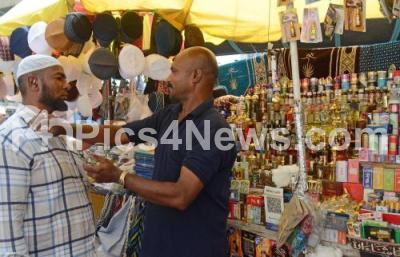 Photo Caption : Muslim devotees apply attar (perfume) before the Friday prayers during the first Friday Namaz of the holy month of Ramadan, in Bengaluru on Friday 15th March 2024