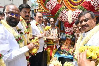 Photo Caption : Former Minister, MLA M Krishnappa, MLA Priyakrishna and others participated in the Sri Lakshmi Narasimha Swami Deva Brahma Rathotsava procession at Attiguppe, in Bengaluru on Sunday 24th March 2024