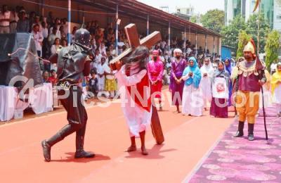 Photo Caption : Christians reenact the crucifixion of Jesus Christ at St Teresa Church to mark Good Friday, in Bengaluru on Friday 29th March 2024
