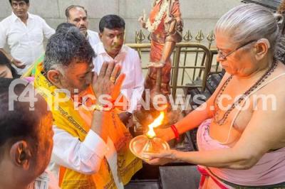 Photo Caption : DCM and KPCC President DK Shivakumar performing pooja at Rajarajeshwari temple, during his public meeting and campaign for the Bengaluru Rural Congress Lok Sabha candidate DK Suresh at Rajarajeshwari Nagar, in Bengaluru on Sunday 31st March 2024