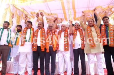 Photo Caption : Bengaluru Central BJP Lok Sabha Candidate PC Mohan with BJP leaders BS Yediyurappa, DV Sadananda Gowda, Suresh Kumar, R Ashoka, CT Ravi, Arvind Limbavali and Janardhan Reddy during the Bengaluru Central BJP Lok Sabha Candidate PC Mohan nomination filing procession, in Bengaluru on Monday 1st April 2024