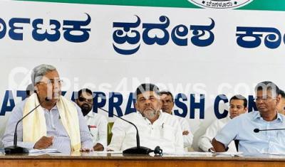 Photo Caption : CM Siddaramaiah with DCM, KPCC President DK Shivakumar, Congress leaders Satish Jarakiholi. HK Patil and others during a meeting ahead of Lok Sabha election, in Bengaluru on Friday 5th April 2024