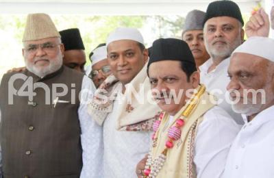 Photo Caption : Minister Zameer Ahmed Khan with Bengaluru Central Congress Lok Sabha candidate Mansoor Khan and others during the prayer at Eidgah ground at Chamarajpet on the occasion of the “Eid ul Fitr” festival, in Bengaluru on Thursday 11th April 2024