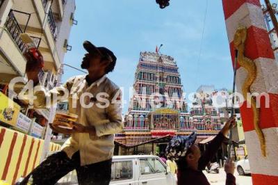 Preparations for Karaga Festival celebrations at Dharmaraya Temple, in Bengaluru on Monday 15th April 2024