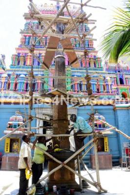 Photo Caption : Preparations for Karaga Festival celebrations at Dharmaraya Temple, in Bengaluru on Monday 15th April 2024