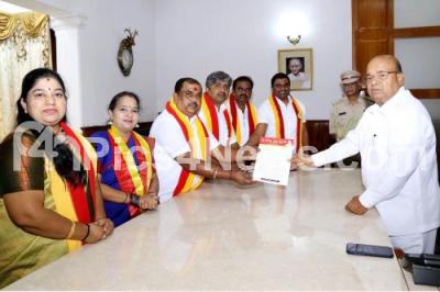 Photo Caption : Karnataka Rakshana Vedike delegation led by its President TA Narayana Gowda met Governor Thaawar Chand Gehlot at Raj Bhavan and submitted a memorandum and demanding the intervention of Honourable President and the Central Government for the protection of Goa Kannadigas, in Bengaluru on Friday 19th April 2024