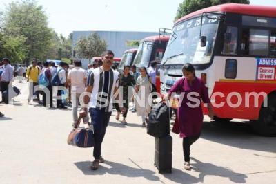 Photo Caption : Police personnel leave to their respective polling stations for the Lok Sabha Election duty, in Bengaluru on Wednesday 24th April 2024