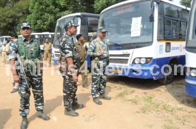 Photo Caption : CRPF personnel for the lok sabha election duty, at Kamala Bai School, Queens Road, in Bengaluru on Thursday 25th April 2024